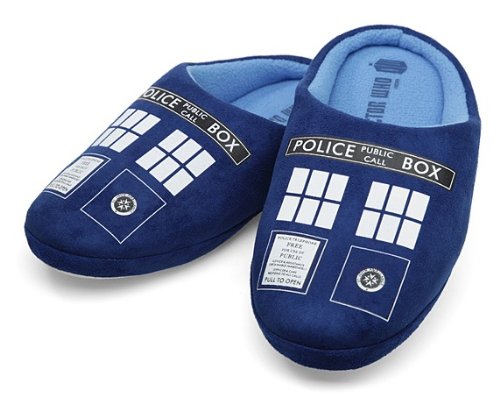 The next time you kick back and watch a Doctor Who marathon, do so in comfort and wear these Doctor Who TARDIS Slippers. They will keep you comfy and cozy while on the edge of your seat as the Doctor has his latest adventure. They aren't bigger on the inside, which is good, because your feet would never fit. They do look like the TARDIS on the outside however, which makes these slippers awesomely geeky.